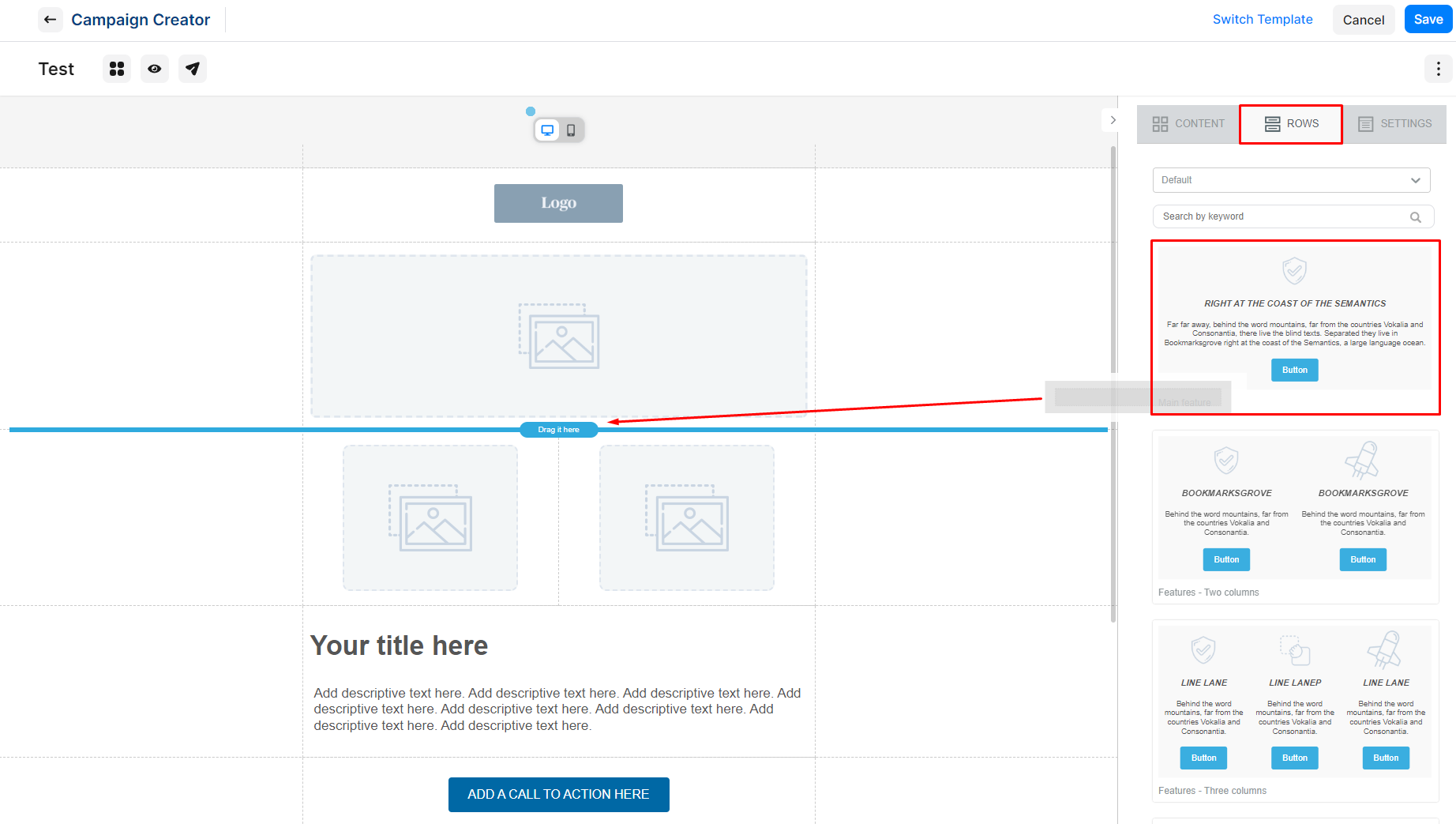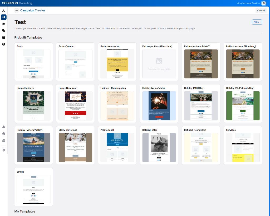 - After setting up your campaign type and marketing goals, the first step in customizing your email is choosing the template you want. There are multiple templates available to determine the framework of your email. Some of these are designed to support a newsletter, feature a new blog post, showcase a special offer, and more! Pick the one that most closely aligns with your goals for the email.