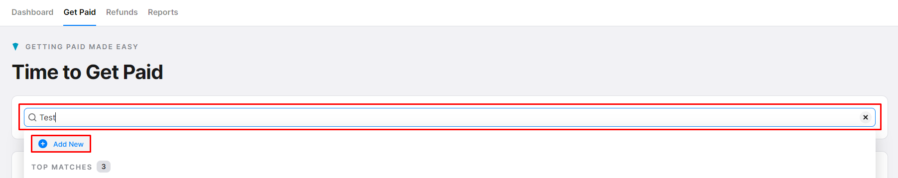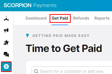 - Navigate to the Get Paid section by selecting the Payments Suite in the left-hand navigation and clicking on Get Paid in the upper navigation. You can also go straight to the section and get started.
