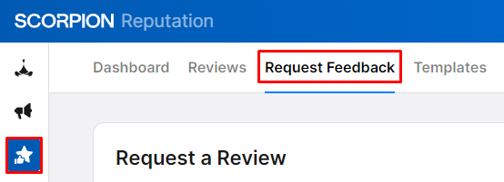 - Navigate to the Request Feedback section by selecting the Reputation Suite in the left-hand navigation and clicking on Request Feedback in the upper navigation. You can also go straight to the section and get started.